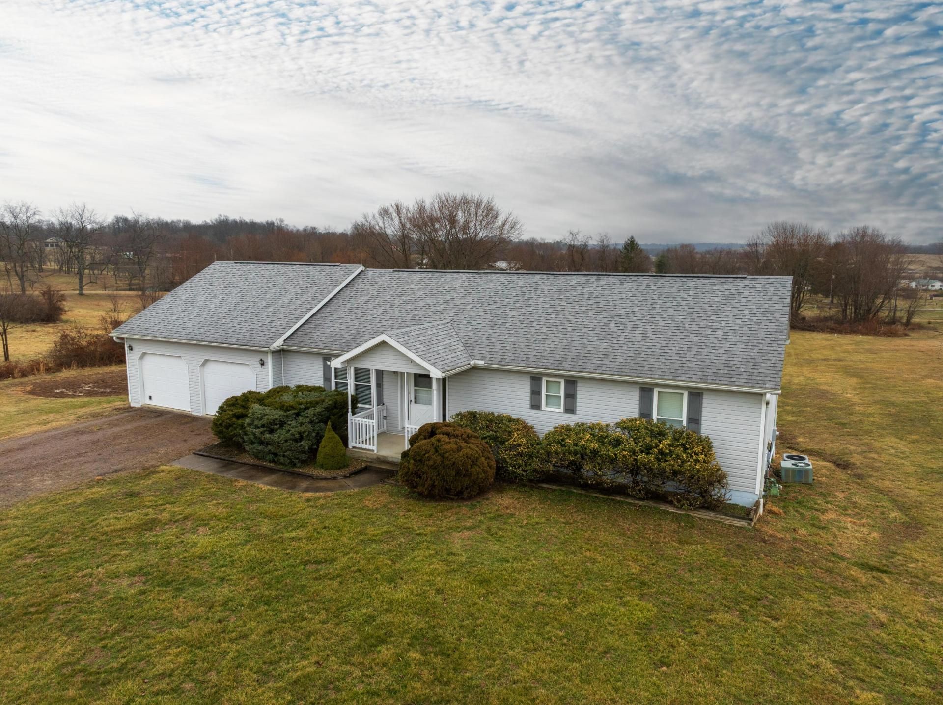 At the end of the street with very little traffic, this well-designed 3-bedroom, 3.5-bath home offers one level living and 3000 sf on just over 2 acres of flat, usable land. The main level features an inviting living room, dining area, and functional kitchen, along with a half bath and laundry. Two spacious bedrooms each include their own ensuite bath, providing comfortable private retreats. Thoughtfully built with accessibility in mind, the home offers 3' wide doorways and 4' wide halls, making it wheelchair friendly.The fully finished walk-out basement adds impressive additional living space with excellent ceiling height. The lower level includes a large family room, third bedroom, full bath, and office with a closet for a possible 4th sleeping area. Plus a dedicated space already in place that could easily be converted into a second kitchen or laundry area, offering great potential for multi-generational living. Enjoy the relaxing outdoors from the deck or patio overlooking the yard and fruit trees. A concrete pad is already in place for a storage building or workshop. This home offers comfortable living inside and out close to US 33 and 15 minutes to Athens.